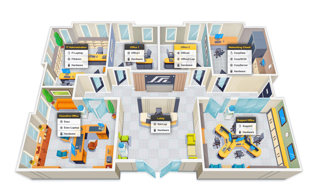 With this given information, I could access virtual machines within the lab (Windows or Linux) which were virtually located in each of the rooms in the above diagram. I could then use a variety of command line commands, such as nslookup, ping, netstat, ipconfig /all, and more to determine the scope of the problem and look for solutions.