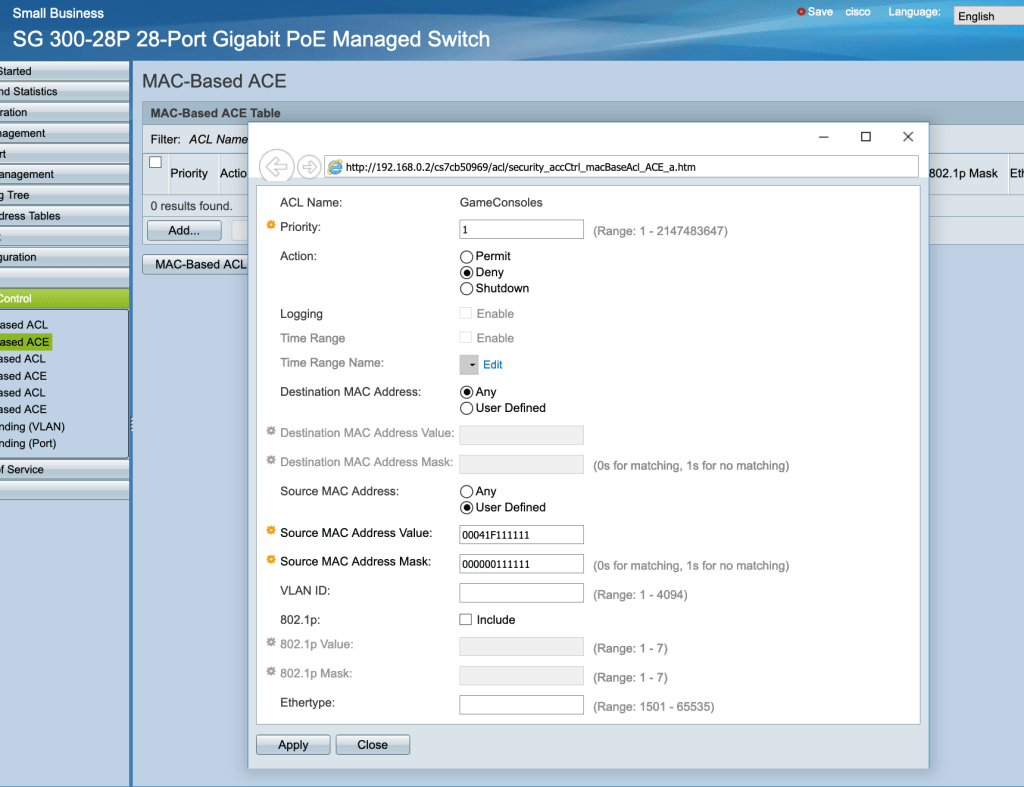 Today I’ve been spending quite a bit of time learning about how to make a network more secure through hardening a switch. One additional way to do so is through MAC-based access control entries.