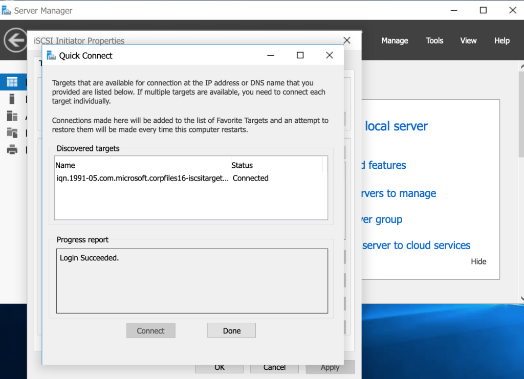 Good, now select the server that you want to authorize to be an initiator. And the disk is created.