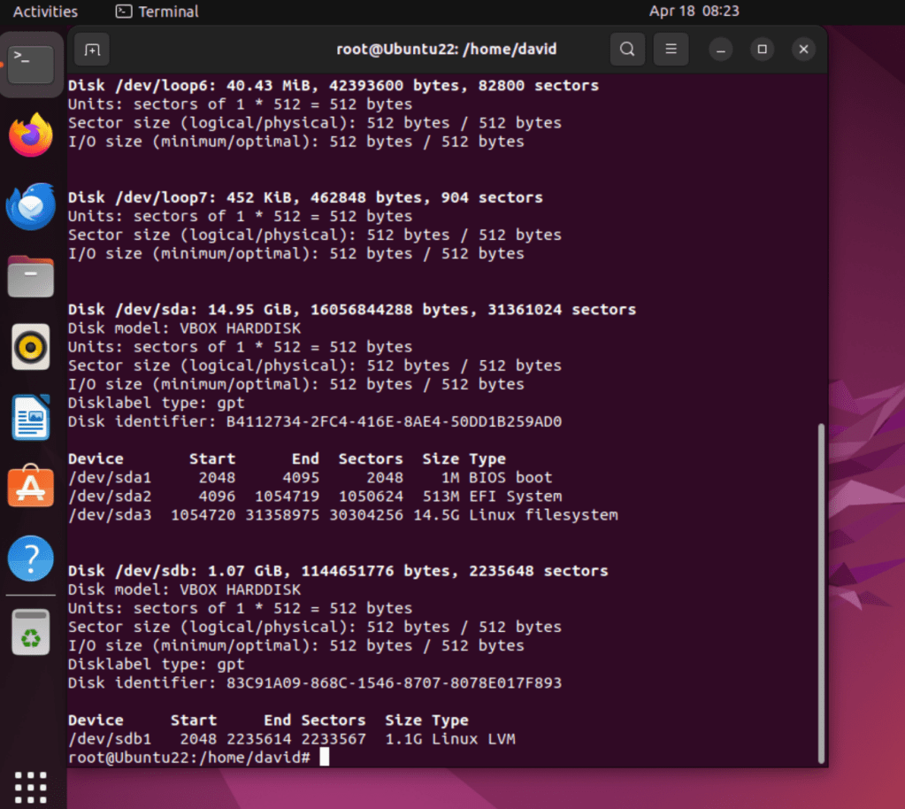 I want to experiment with configuring LVM on partitions, but the ones presented on my Ubuntu 22.04 VM are not available. I followed this tutorial for creating an additional partition, once that I would be able to practice on.