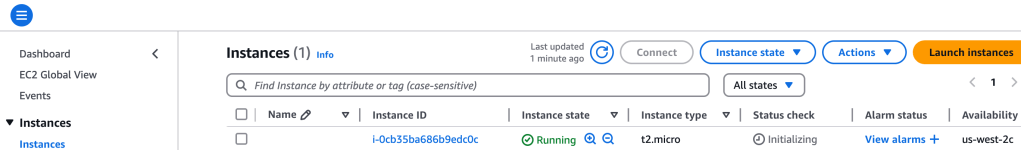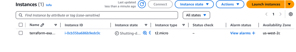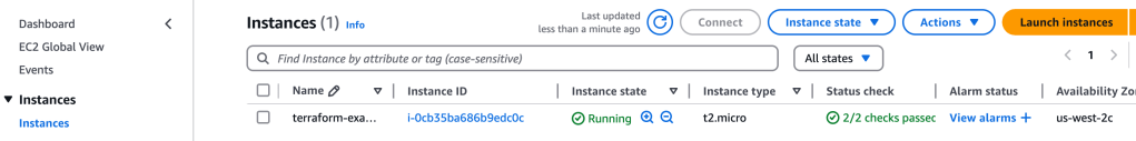 Now, in AWS console I head over to view the EC2 instances running and sure enough, there’s the t2.micro we just created: