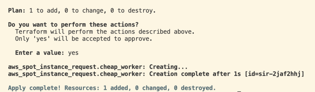 $ terraform apply # run TF and apply the desired changes
