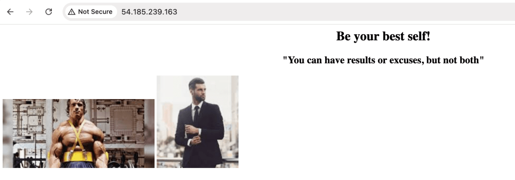 Then, copying the instance IP address from the Console and pasting it into a browser showed the fruits of all this labor: