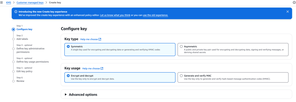 Create AWS KMS key