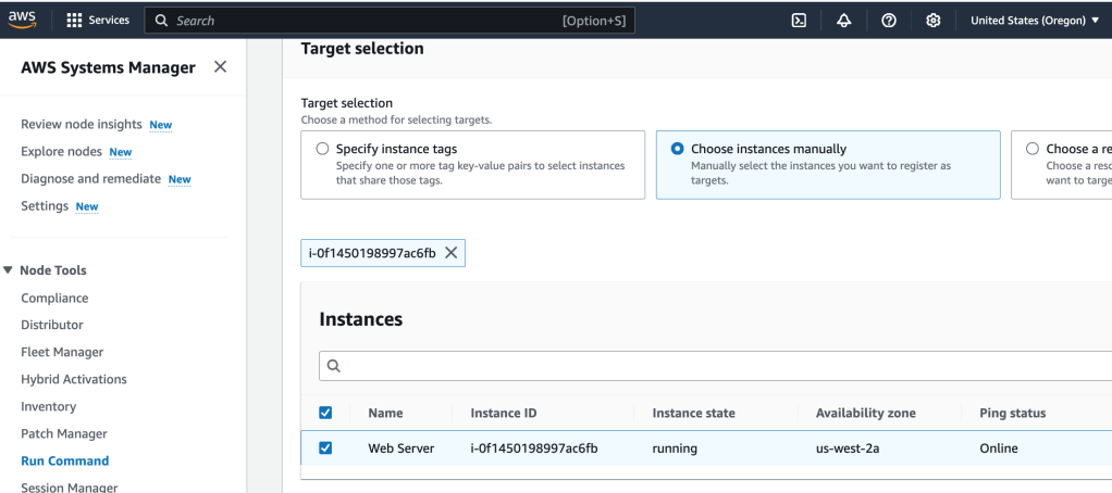 I select the target (the ec2 instance), and then hit ‘Run’: