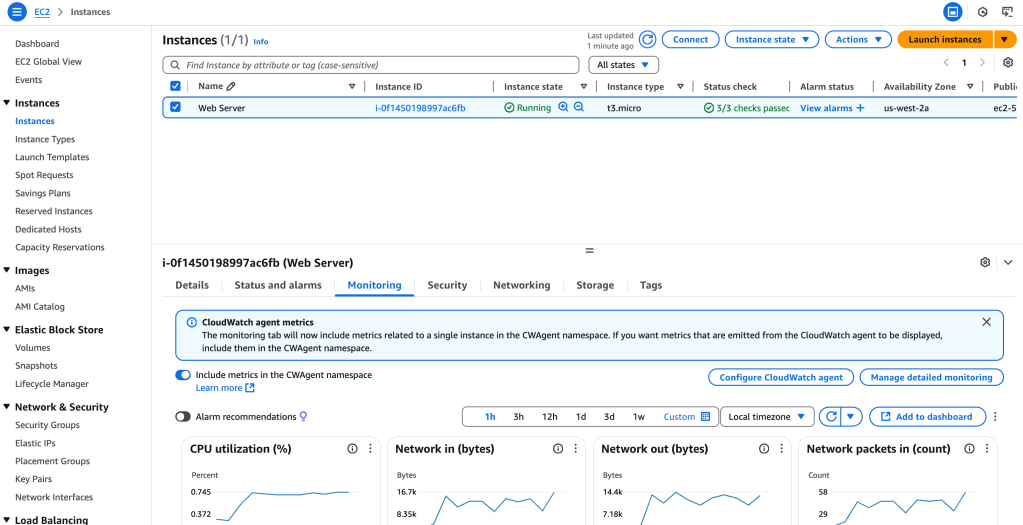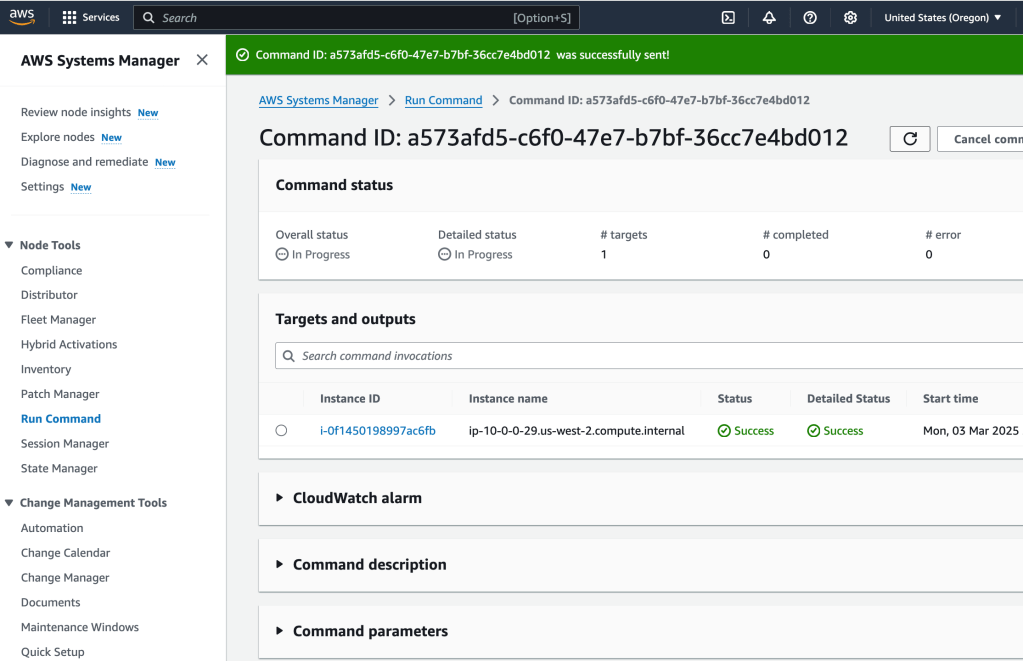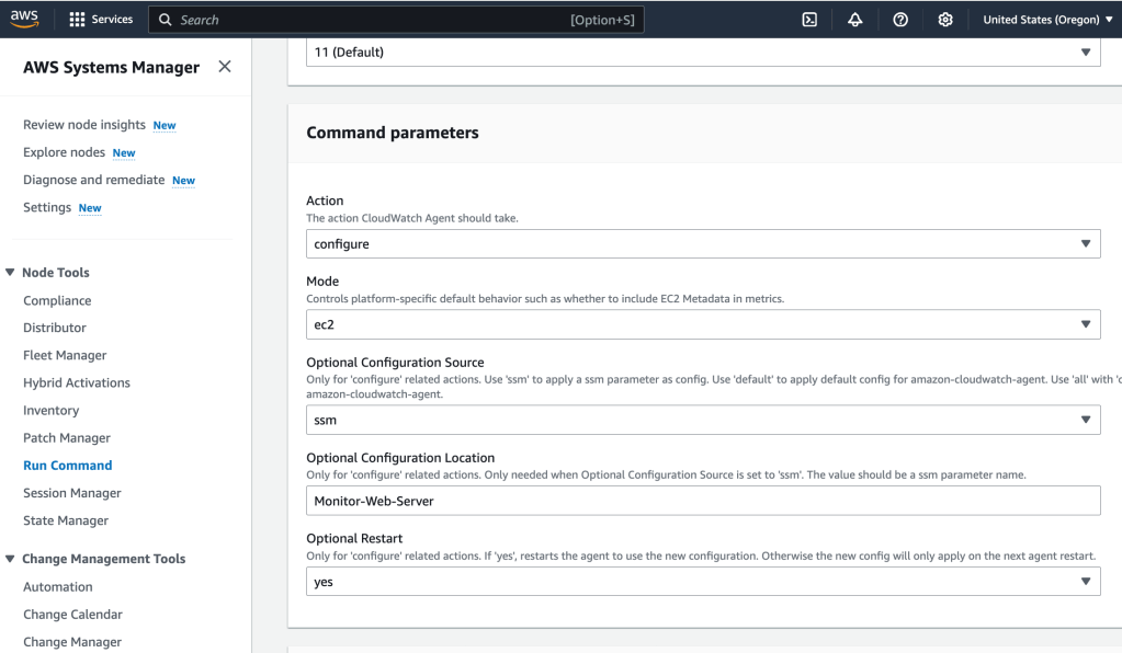 This will install the CloudWatch agent on the web server. I select ‘Run’ to put these actions into motion.