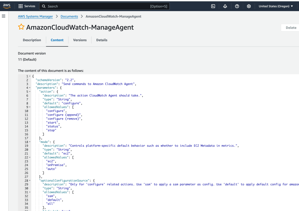 "description": "Only for 'configure' related actions. Use 'ssm' to apply a ssm parameter as config. Use 'default' to apply default config for amazon-cloudwatch-agent. Use 'all' with 'configure (remove)' to clean all configs for amazon-cloudwatch-agent.",