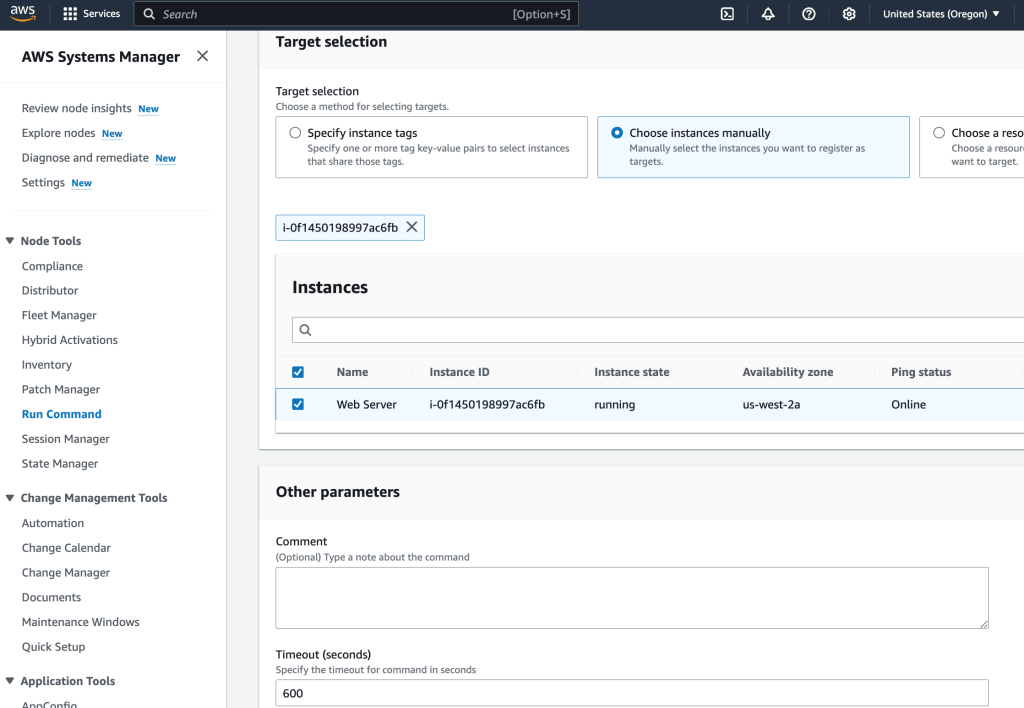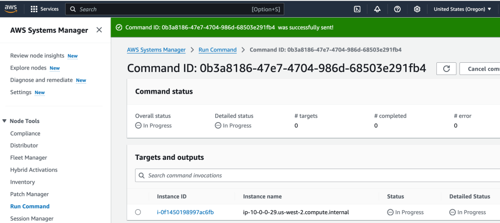 Next, Run Command will be used to start the agent on the instance.