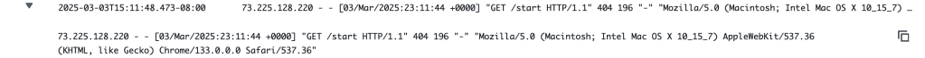 I open up that log (by clicking on the name), and sure enough, there is a log entry of my GET with corresponding 404 error: