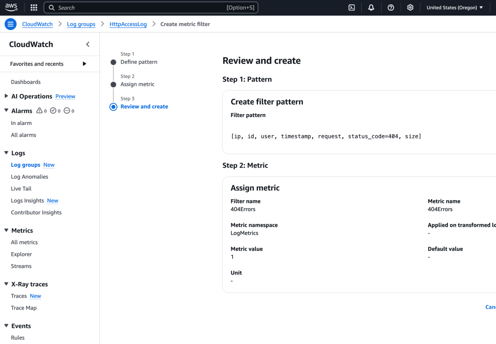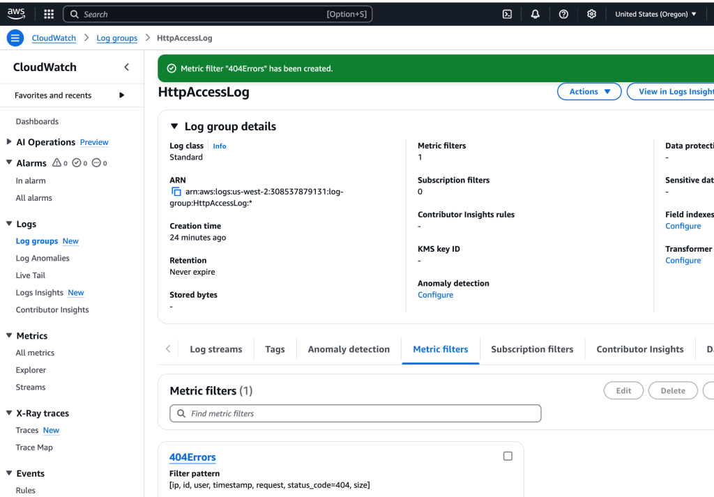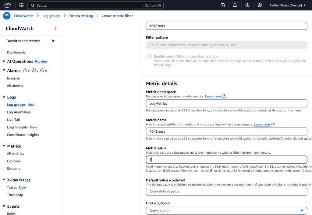 Creating Metric Filter w/ CW Logs