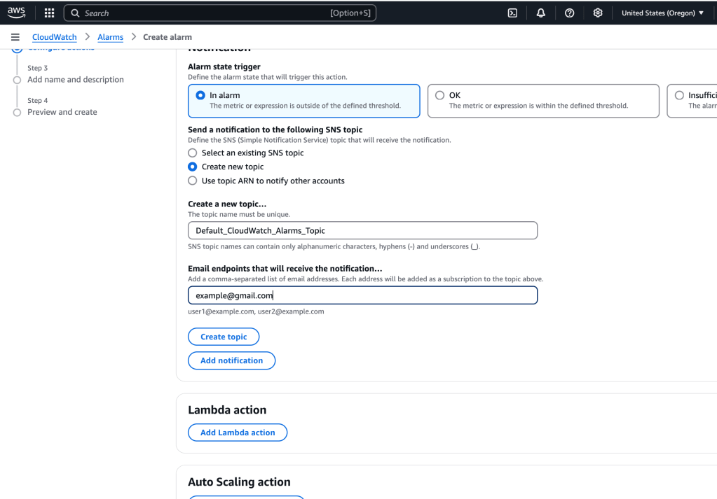 Review and create alarm: