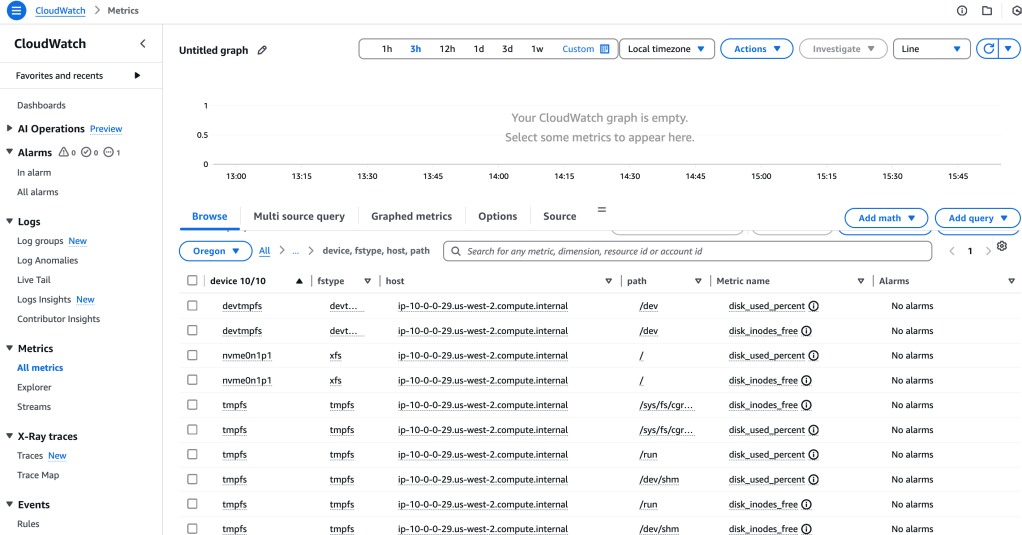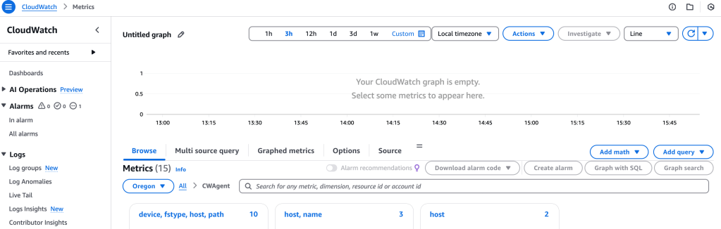 At this point, we have the CloudWatch agent running on the ec2 instance, and it is sending log and metric data to CloudWatch.