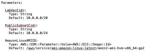 Adding an ec2 instance to the YAML file, within the Resources section, is pretty straightforward, too. It is more complex, however, since there is an AMI involved, subnet association, and security group. Let’s start with the AMI. We can retrieve the latest AMI using the AWS Systems Manager Parameter Store, a useful approach indeed! I add the following to the Parameters section of the template: