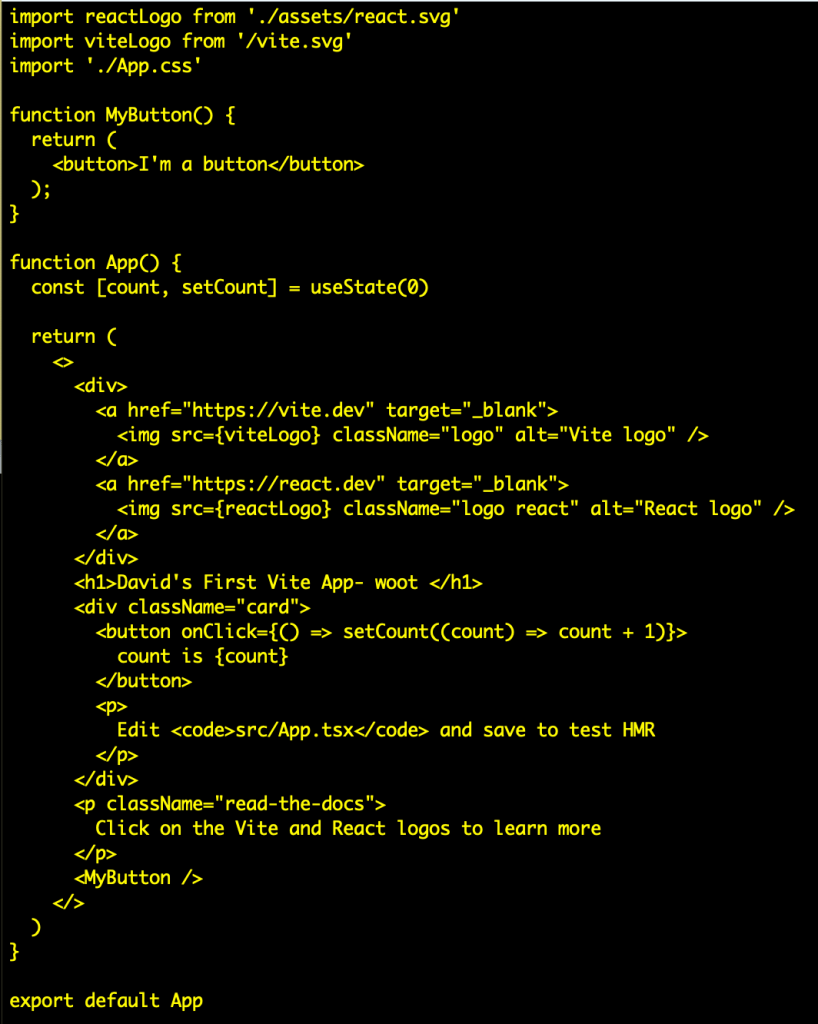 In my last post I used Vite to scaffold a basic app. Now to go over react.js and practice using that same scaffolding. I’m working off the tutorial found here :