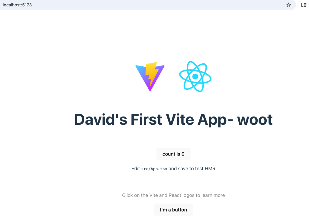 We’re still running the app on the local server (localhost 5173) and you can see the button added at the bottom there.