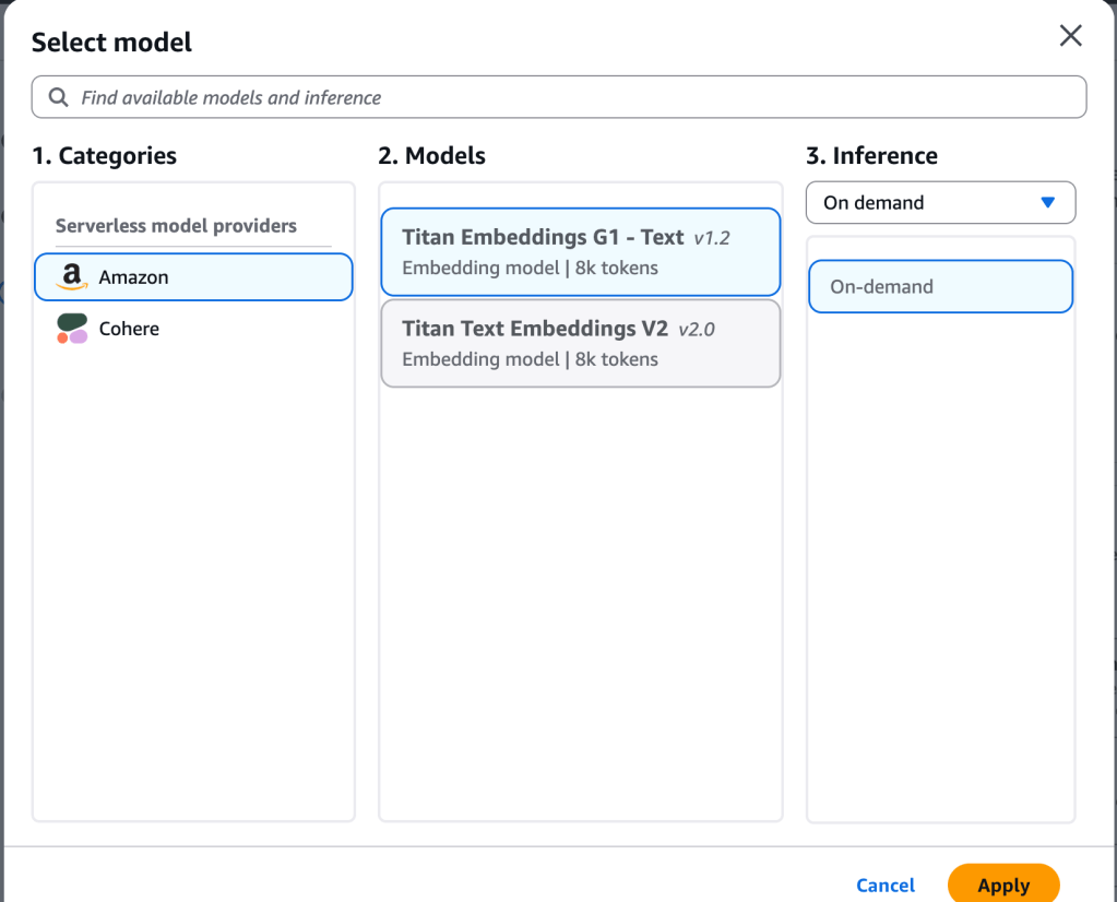 We have to select an Embeddings Model in order to translate the text (of the book) into embeddings. Embeddings are numerical values of words captured within a dimensional space; this is used to find other embeddings (words) that are are similar to the word or text in question. In the Oregon zone, these are the options available to me: